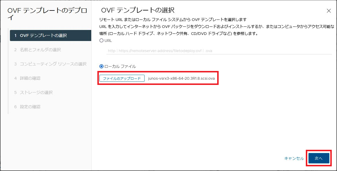 ローカルファイルのアップロードで、先の手順で入手したファイルをアップロードします。