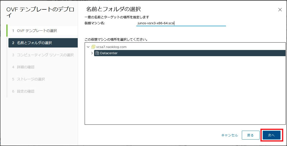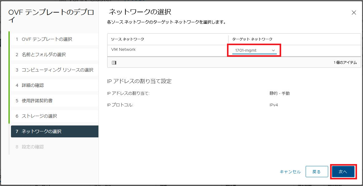 ネットワークを選択します。ここで設定したネットワークが管理用の fxp0 になります。