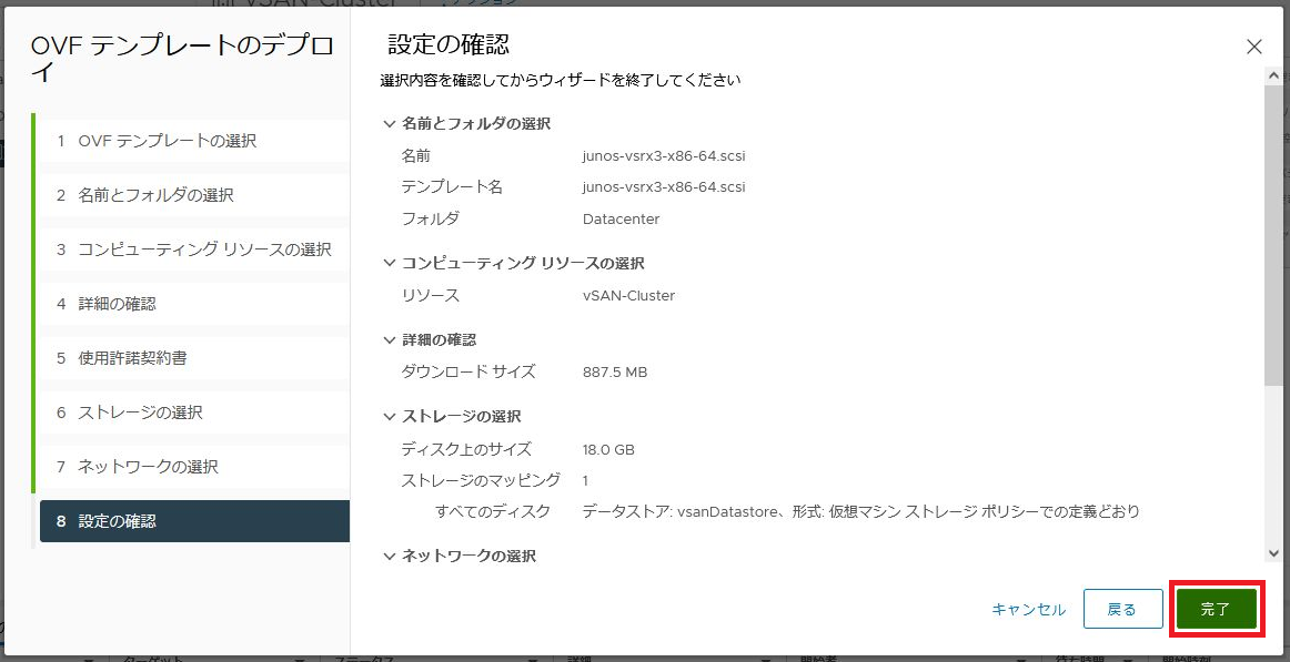 デプロイが完了すると、起動前に仮想マシン設定の編集を行います。