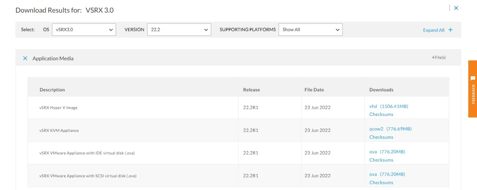 Juniper のサポートサイトからイメージファイルをダウンロードします。